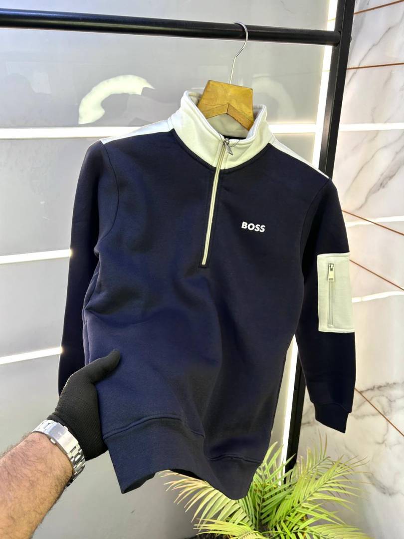 Boss Black Imported Super Premium Half Zipper Sweatshirts F3086-BL