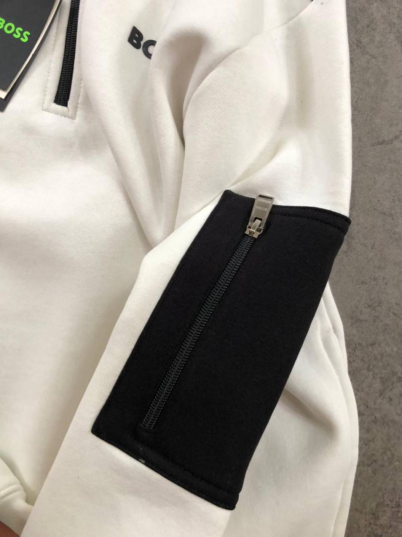 Boss White Imported Super Premium Half Zipper Sweatshirts F3086-WH
