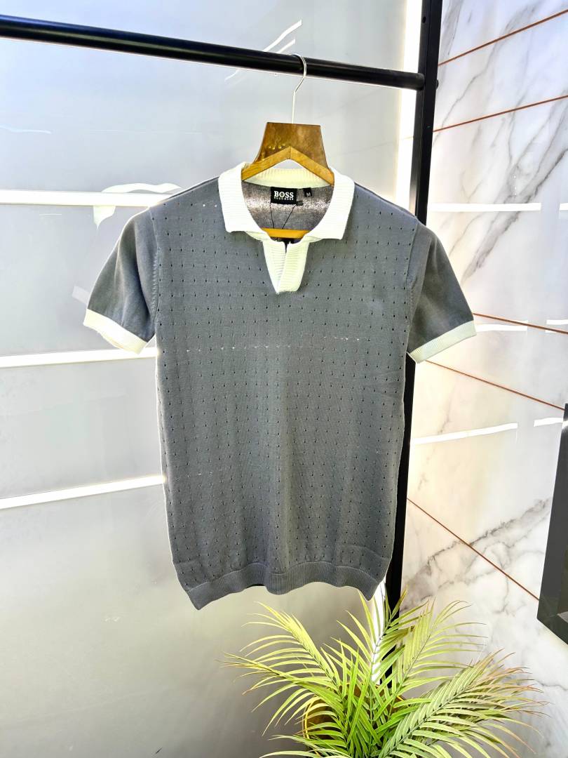 Boss Knitted Polo Grey Super Premium Collar Neck T-shirt F2754-GY