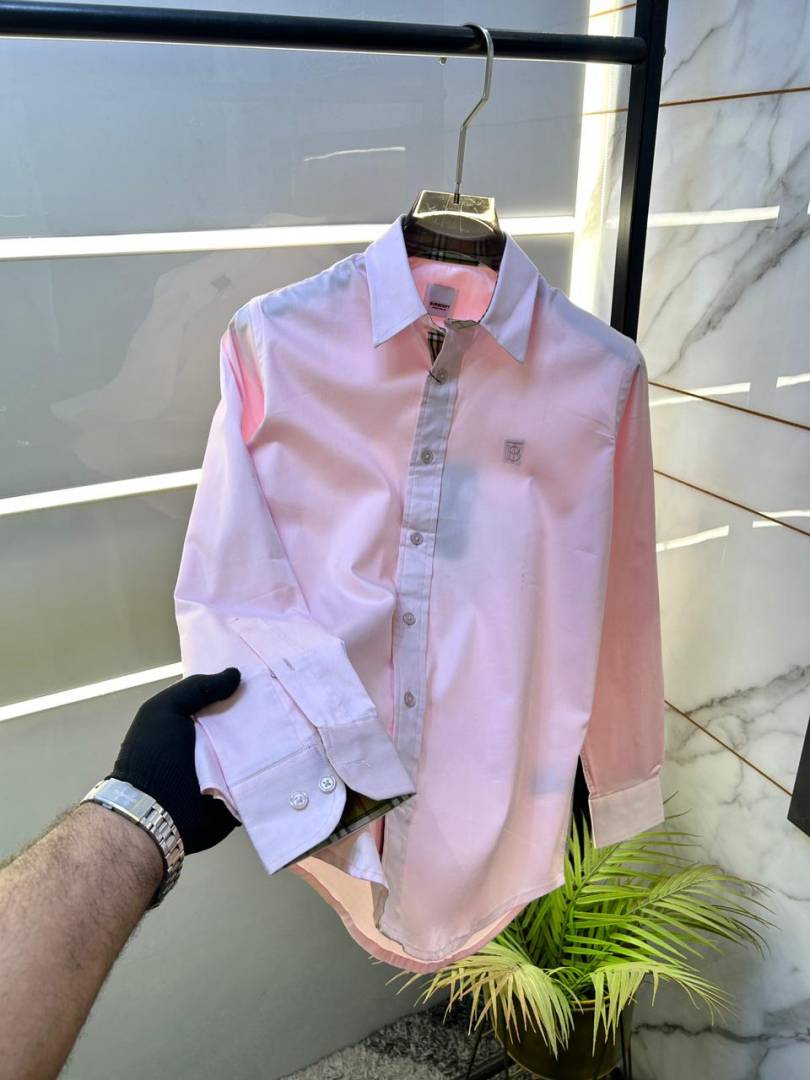 Burberr y Pink Premium Embroidery Logo Shirt With Brand Packing F3229-PI