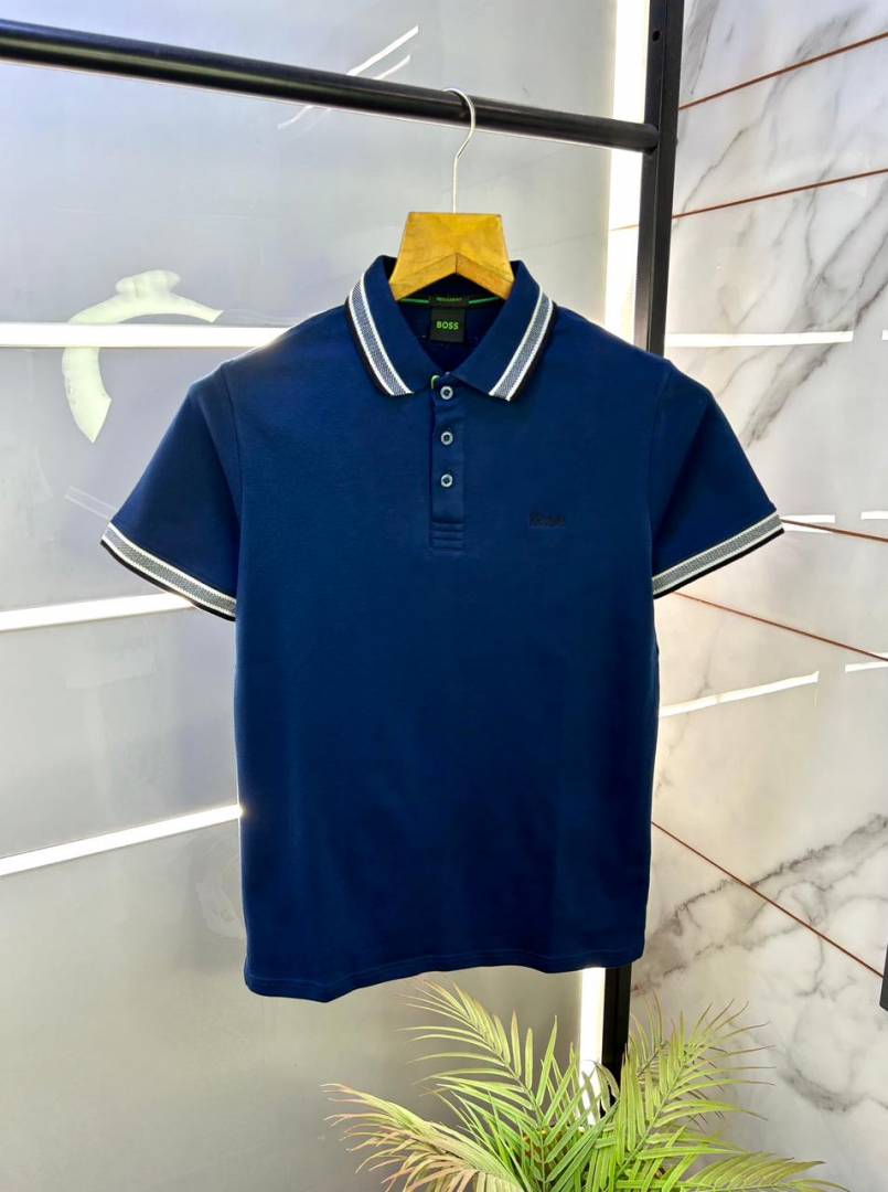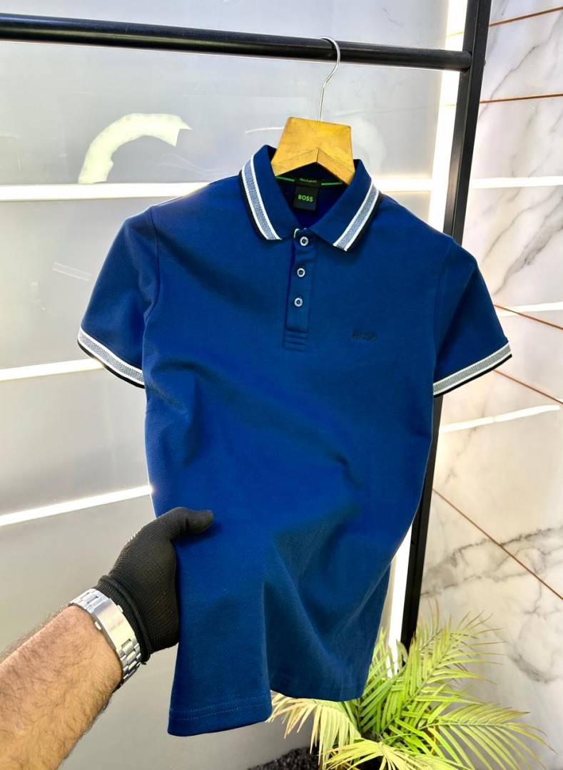 Hugo_Boss Blue Premium Collar Neck Polo T-shirt F3092-BU