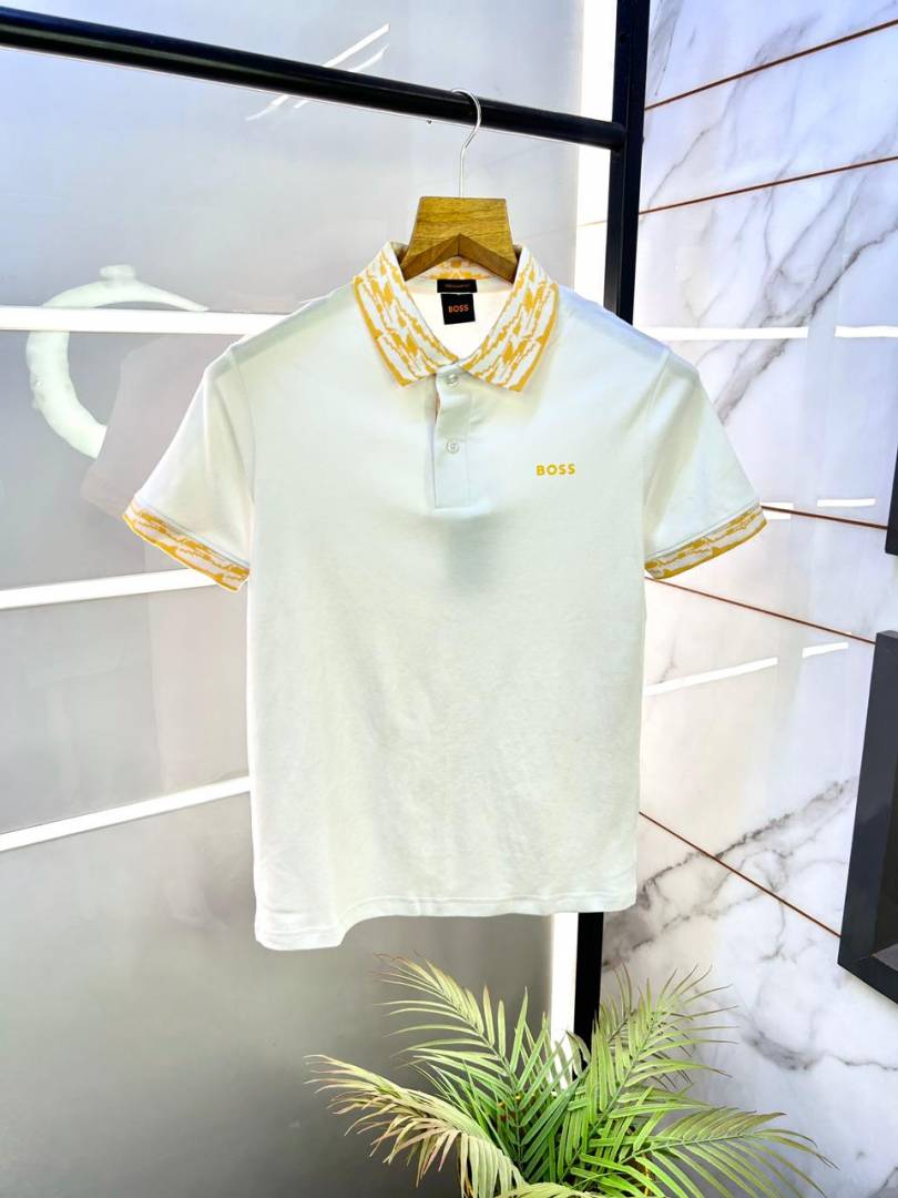 Boss Knitted Polo White Super Premium Collar Neck T-shirt F2754-WH