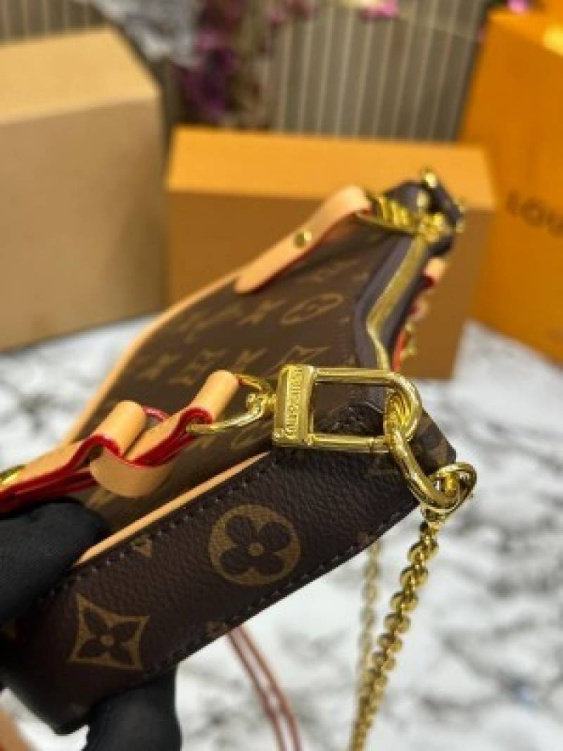 • LOUIS_VUITTON EASY SLING CHAIN POUCH WITH OG DOUBLE MAGNETIC BOX PREMIUM QUALITY WITH CARRY BAG (BROWN) (V-81066)