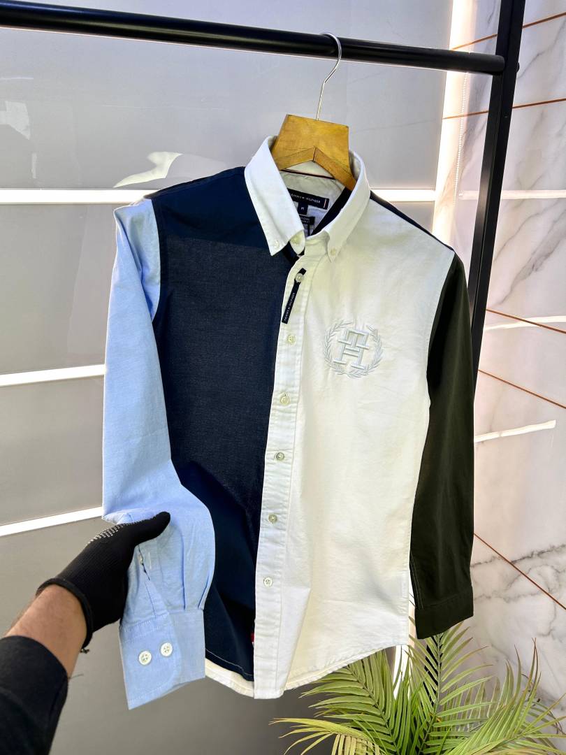 Tommy_Hilfiger Embroidery Logo Oxford lycra Navy Premium Shirts F2419-N2
