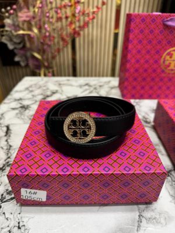 Tory Burc_h Black Leather Belt with Crystal-Studded Gold Logo Buckle Includes Box Dust Bag And Carry Bag (T16)